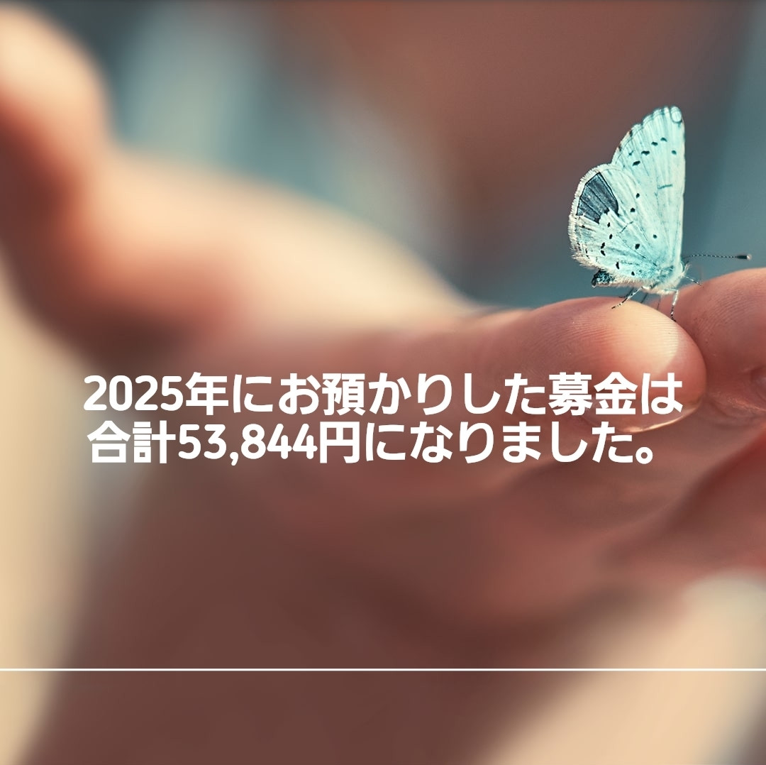 2025年、皆様からお預かりした動物募金は53,844円になりました。ご協力ありがとうございました。